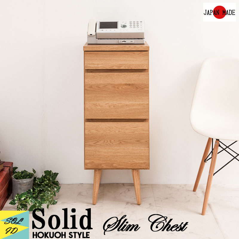 【solid】北欧ヴィンテージシリーズ 幅37脚付きスリムチェスト 天然木脚 ナチュラル 引出しスライドレ...
