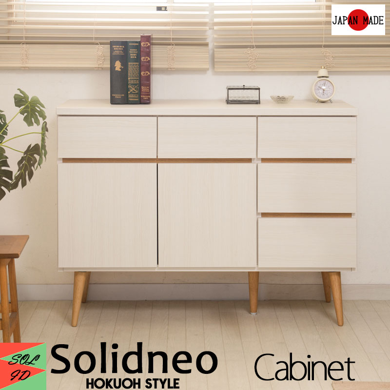 【solid-neo】北欧シンプルシリーズ 幅110 脚付きリビングキャビネット 天然木脚 タンス 収納 木製 ...