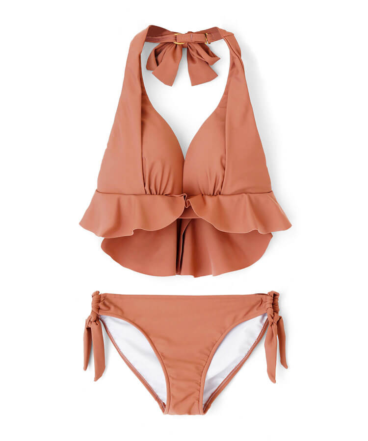 Solid ノンワイヤービキニ7M・9M トレンドカラーがポイントの甘すぎない大人フェミニンなナチュラルアップブラビキニ。 ブラ内側のパッドが自然なボリュームをプラスし、サイドの布でしっかりキープします。 ノ...