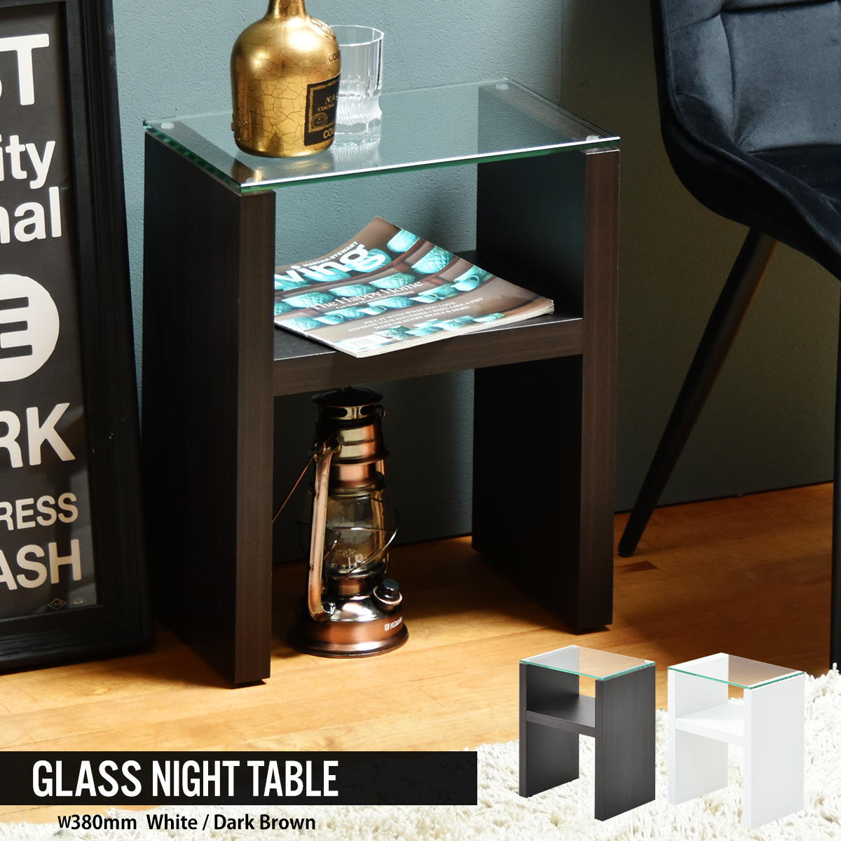H型 ガラス ナイトテーブル W380×D260×H485mm 強化ガラスガラスサイドテーブル ソファサイドテーブル ベッドサイドテーブル ガラステーブル ガラス製 ベッドサイド