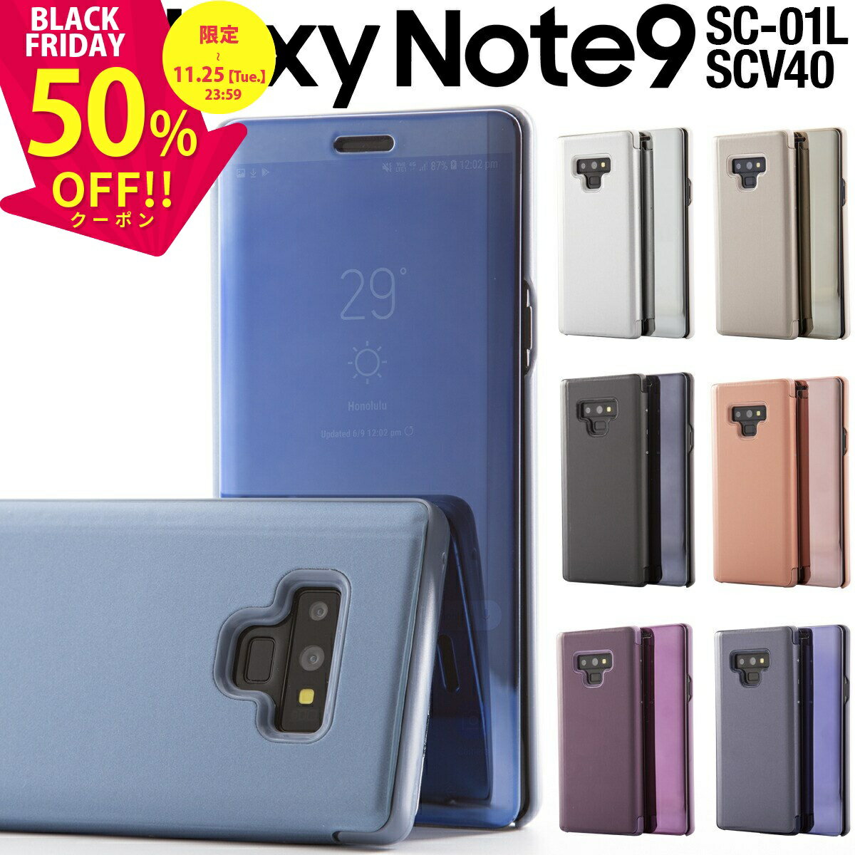商品名称Galaxy Note9 SC-01L SCV40 半透明手帳型ケース適応機種Galaxy Note9 SC-01L Galaxy Note9 SCV40カラーシルバーゴールドブラックネイビーピンクブルーパープル商品説明美しさと保護性を両立。極限まで薄...