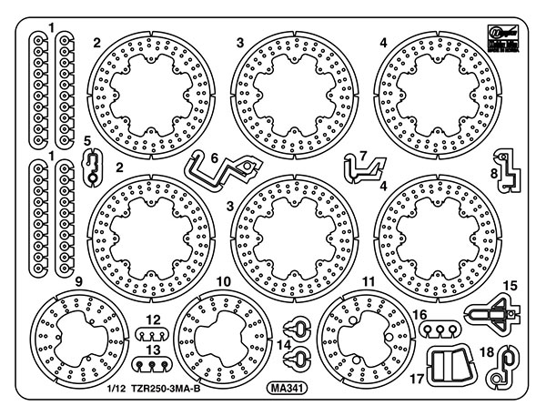 1/12 ヤマハ TZR250 (3MA) 後期型 (1990)用エッチング パーツ[ハセガワ]《11月予約》