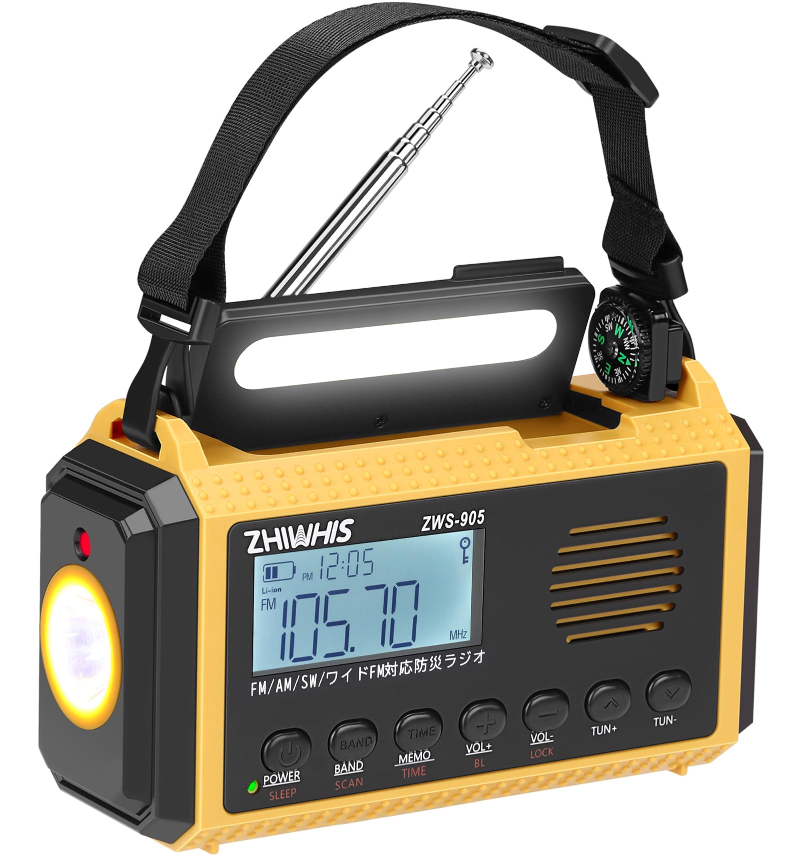 ZHIWHIS 防災ラジオ 10000mAh 短波/FM/AM/ワイドFM対応 懐中電灯 ソーラー/手回し/USB-C充電/乾電池使用...