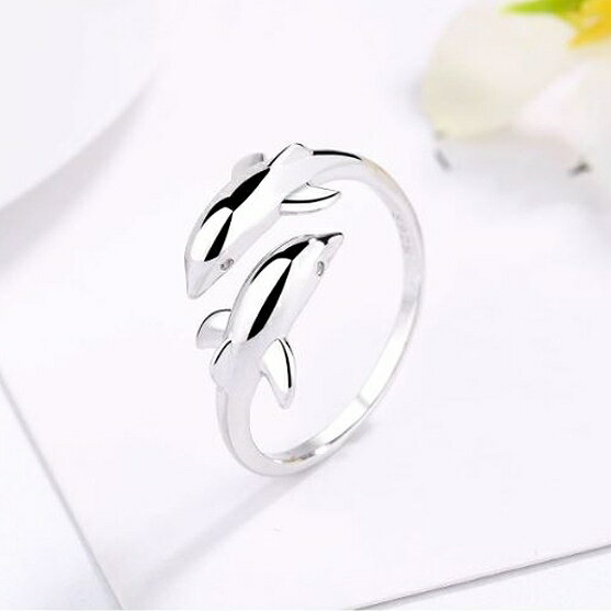 ドルフィン イルカ 指輪 かわいい レディース シンプル シルバー リング フリーサイズ ピンキーリング ...
