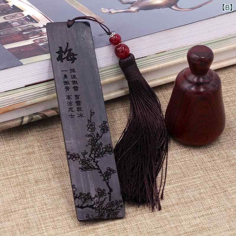 ブックマーク 木製 黒檀木 中国風 梅蘭竹菊 パターン 学生 ギフト 誕生日 プレゼント シンプル 長方形 ...