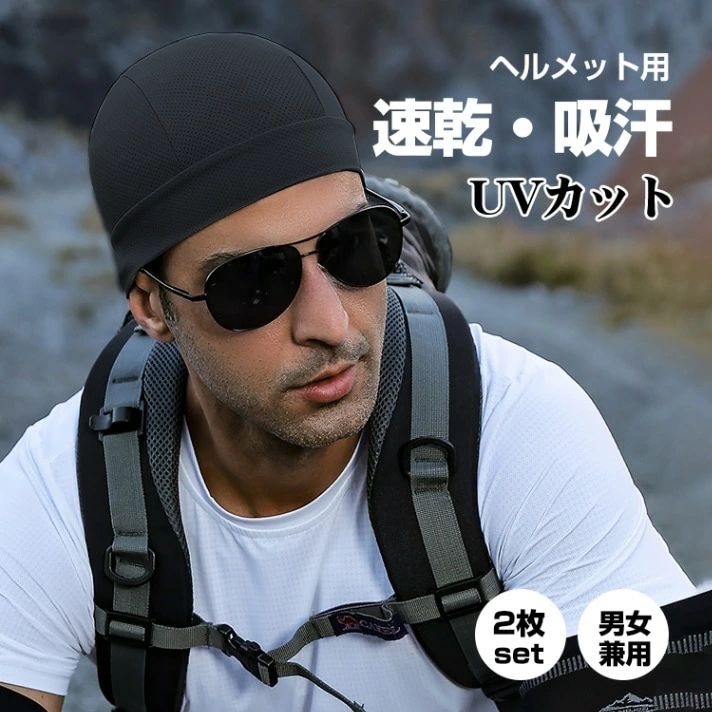 インナーキャップ ヘルメットインナーキャップ 2枚セット 吸汗 速乾 UVカツト フリーサイズ 伸縮性 サイ...