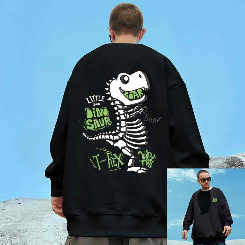 Tシャツ メンズ 男性用 長袖Tシャツ 秋物 ラウンドネック 恐竜 プリント ゆったり ポリエステル スポー...