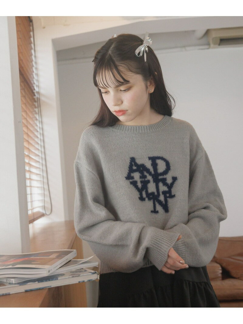 ショートロゴニット/AND YUA ANY/147017 GLOBAL WORK グローバルワーク トップス ニット グレー ネイビ...
