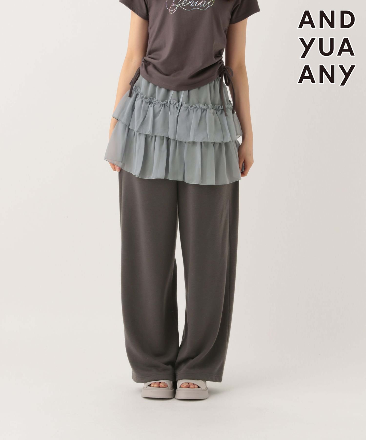 GLOBAL WORK(グローバルワーク)レイヤードカットパンツ/AND YUA ANY/147488トレンドのレイヤードボトムスタイルが簡単に叶う♪【デザイン】ふわふわティアードシフォンスカート付きの裏毛パンツ。スカートとパン...