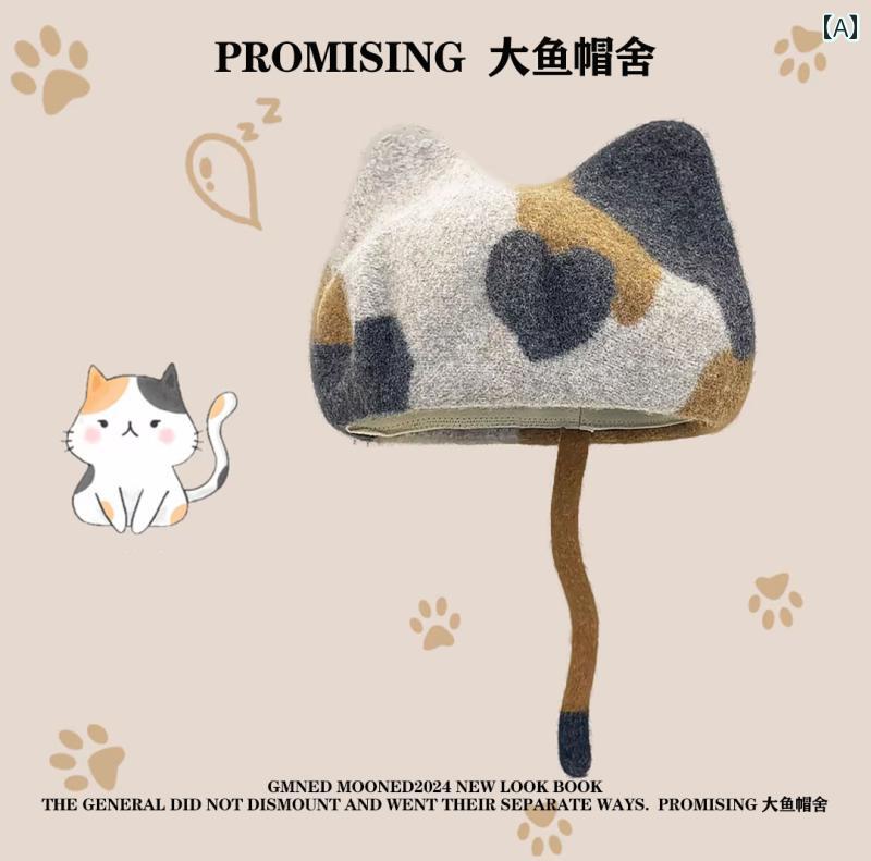 猫耳帽子 かわいい ぬいぐるみ ニット 秋冬 暖かい 保護 ハット キャップ カジュアル おしゃれ 女性用 ...