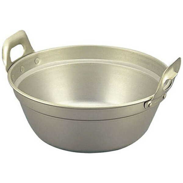アカオアルミの段付鍋は、丈夫で長持ちする純しゅう酸アルマイト加工が施されています。耐食性と耐摩耗性に優れ、アルミ製の円付鍋として高い耐久性を誇ります。42cmの大容量で、様々な料理に対応できます。