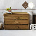 天然木 アンティーク調 三段卓上チェスト(L) anti スタッキングボックス 木製 卓上収納 引き出し 小物入...