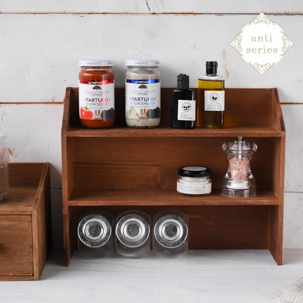 天然木 アンティーク調 ウッドラック 棚 スパイスラック 三段 木製 ミニ スリム コンパクト anti 収納棚...