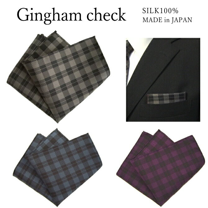 ポケットチーフ シルク ギンガムチェック 柄 絹 ビジネス スーツコーデのアクセント 日本製 京都 西陣織...