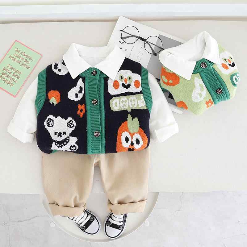 キッズ 男の子 ベビー セットアップ 3点セット 春秋 セーター カーディガン パンツ 幼稚園 保育園 通園...