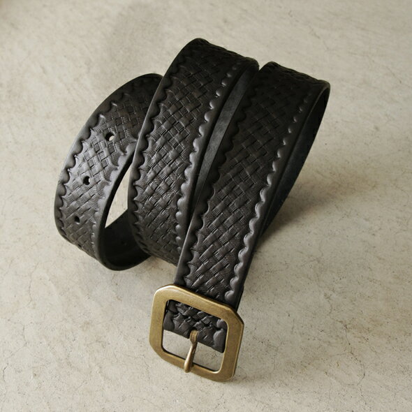 ネイティブ調の編み込み柄を型押したレザーベルト