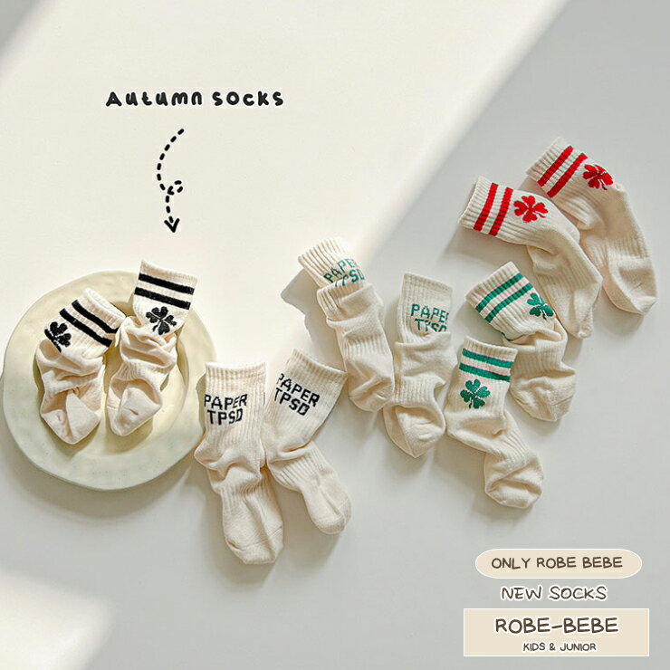 大人気!!オシャレ四つ葉のクローバーカラーソックス line&グラフィックソックス5足セット 可愛いスポーティー子供ソックス5足セット