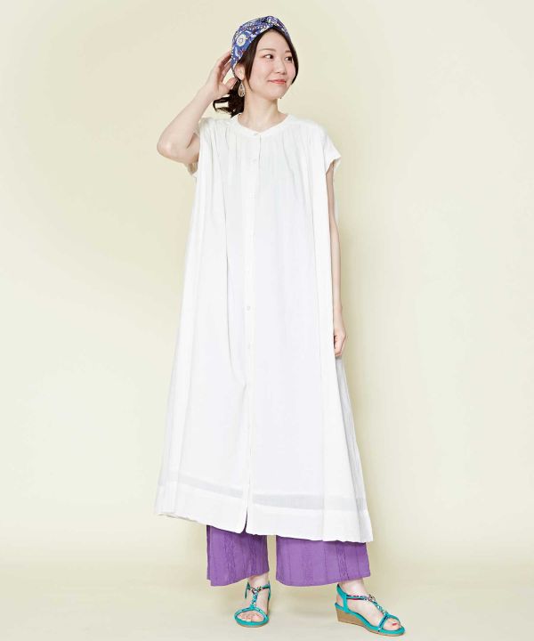 商品仕様:1枚でコーディネートが決まる、コットンボリュームワンピース。肌触りが気持ちいいインド綿素材:を使用。前ボタンを開ければ羽織としても着用可能な万能アイテム。裏地付き。サイズ:着丈121cm 肩幅56cm...