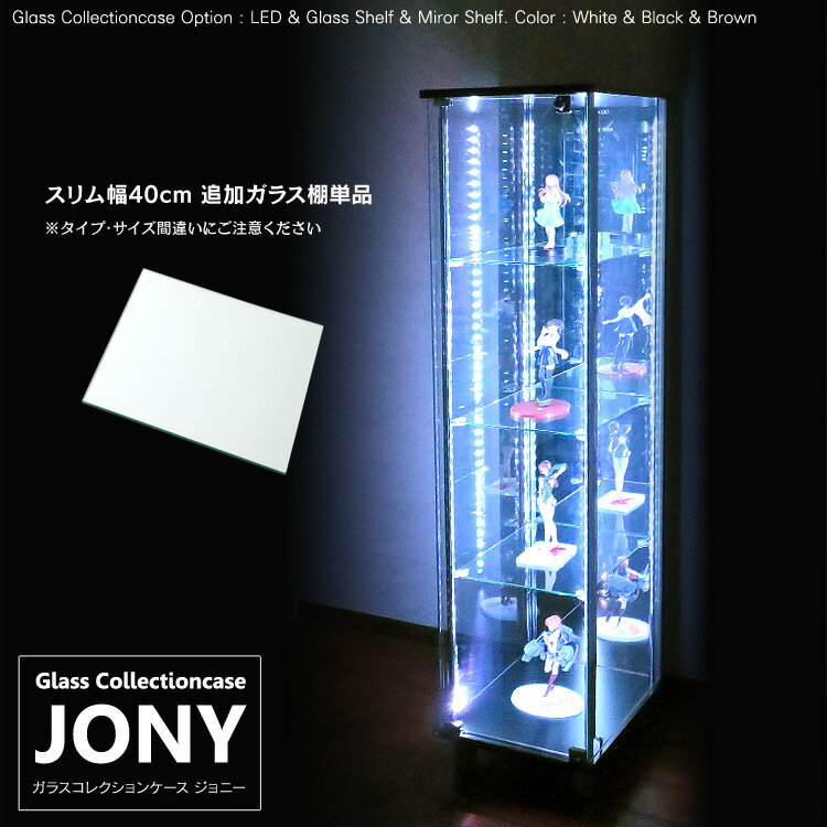 ※【ギフトラッピング不可】こちらの商品はラッピングに対応しておりません。 ※ガラスコレクションケース【JONY】「スリム幅40cm用追加ガラス棚」の商品です。 ※その他本体、オプション品(LED、ミラー棚)は別売...