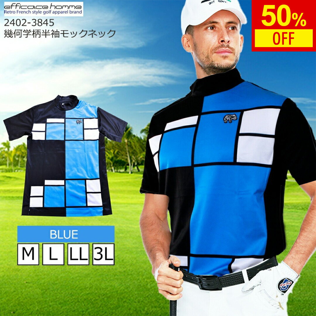 【半額】[2024SS]ゴルフウェア メンズ 半袖 幾何学柄モックネック 春夏 M-3L 2402-3845 ゴルフ ウェア ...