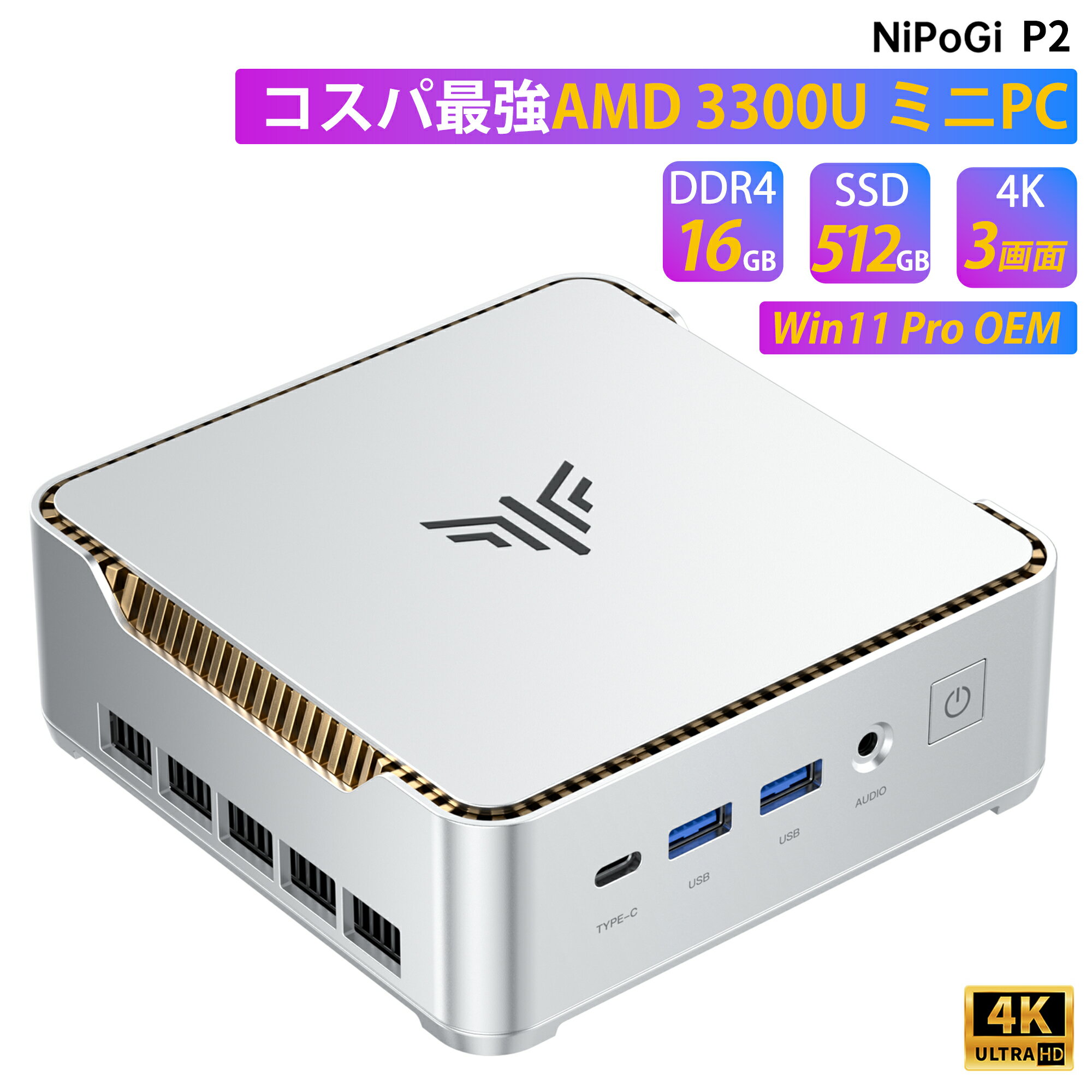 【新製品発売】【2025新登場ミニPC・N150よりコスパ】NIPOGI mini pc Ryzen 3300U 動作より安定 4C/4T ...