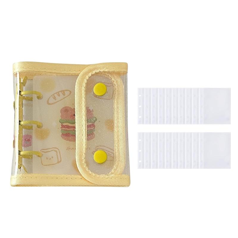 フリランス-ショプ A8 透明バインダー ミニ シール帳 女の子 3穴 PPリフィル 20枚付き 軽量 丈夫 PVC 多...