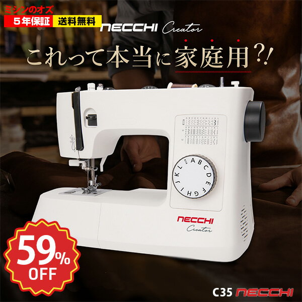 メーカー:NECCHI 型式:C35 フットコントローラー標準装備! DCモーター採用でまるで「職業用」のような縫い心地!針18番付きで革も縫える ■ミシン機能: 強力なDCモーターにより安定した縫い目を実現、低速でも...