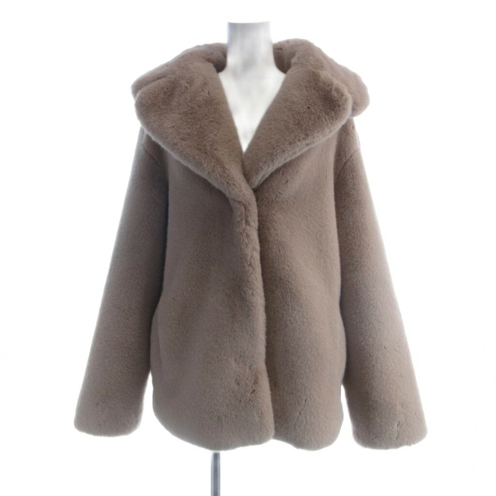 【中古】モリオリ MOLLIOLLI フェイクファーショートコート S ベージュ 長袖 ショールカラー /AB ■OS レ...