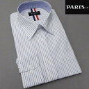 長袖ワイシャツ 白地×紺×青 ストライプ レギュラー PARIS-16e 形態安定 HKP-R08