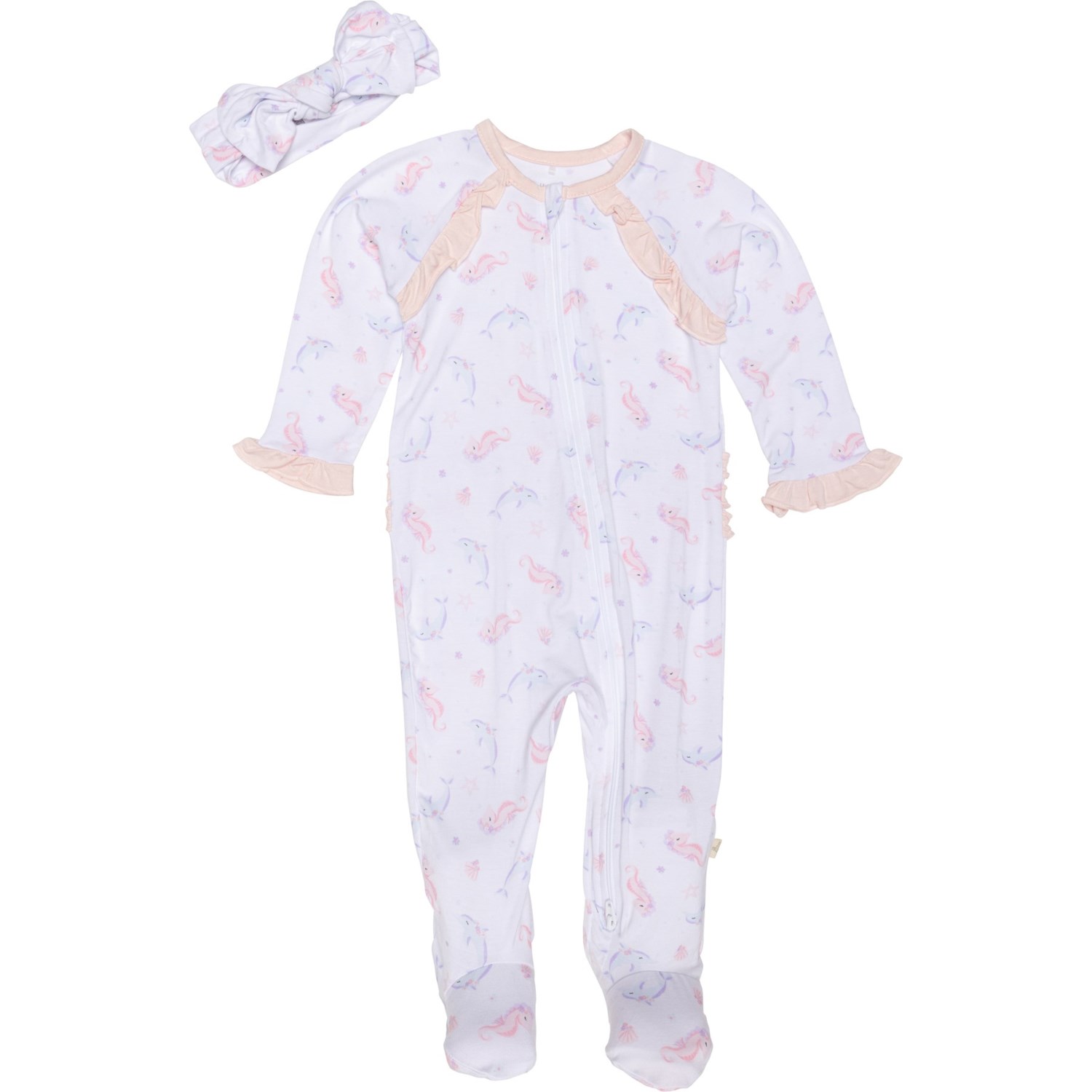 (取寄) ミルクベリー インファント ガールズ シーホースズ プリント カバーオール ウィズ ヘッドバンド ...