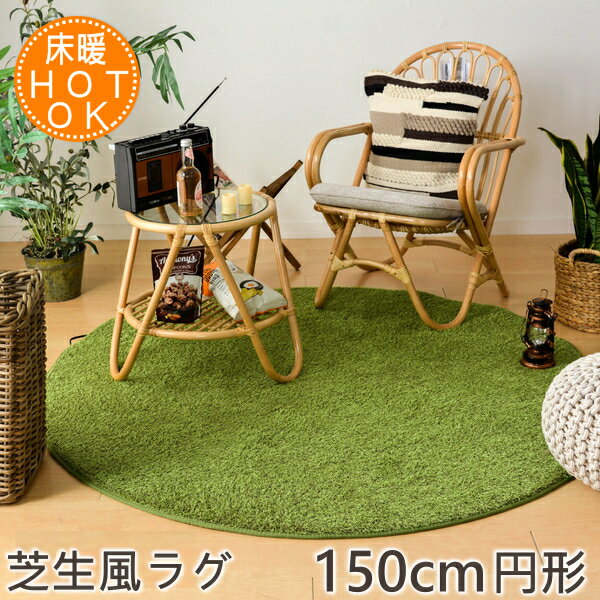ラグ ラグマット 円形 おしゃれ 芝生風 ホットカーペット対応 床暖房対応