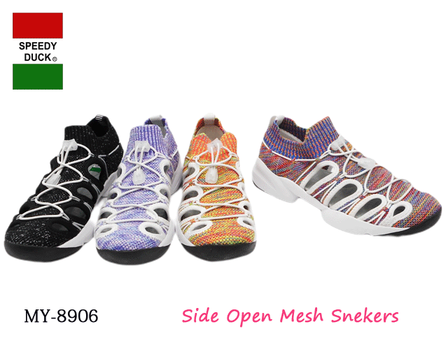 SPEEDY DUCK メッシュ ニット サイドオープン スニーカー 軽量 ホワイトソール クッション デイリー カ...