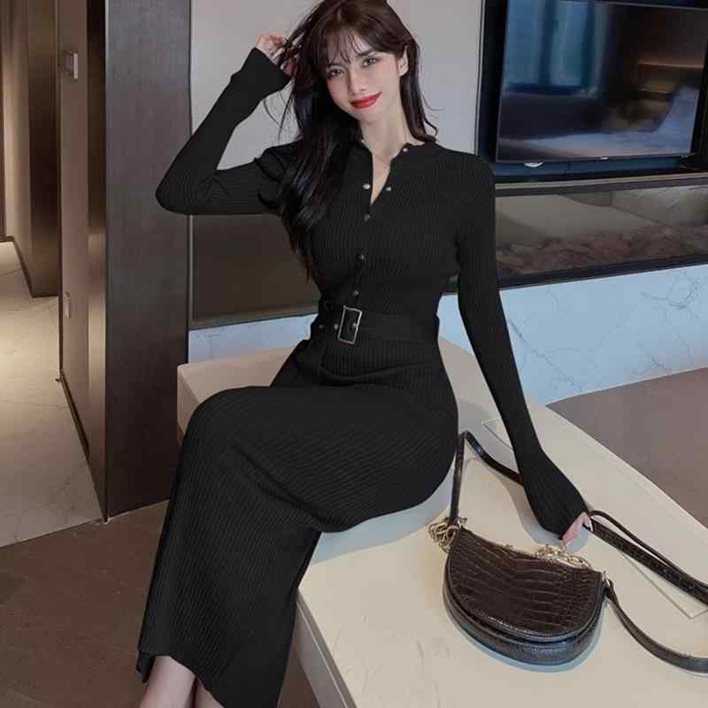 ワンピース レディース 着痩せ効果 スリムフィット タイトシルエット 韓国風 ファッション ニット ロン...