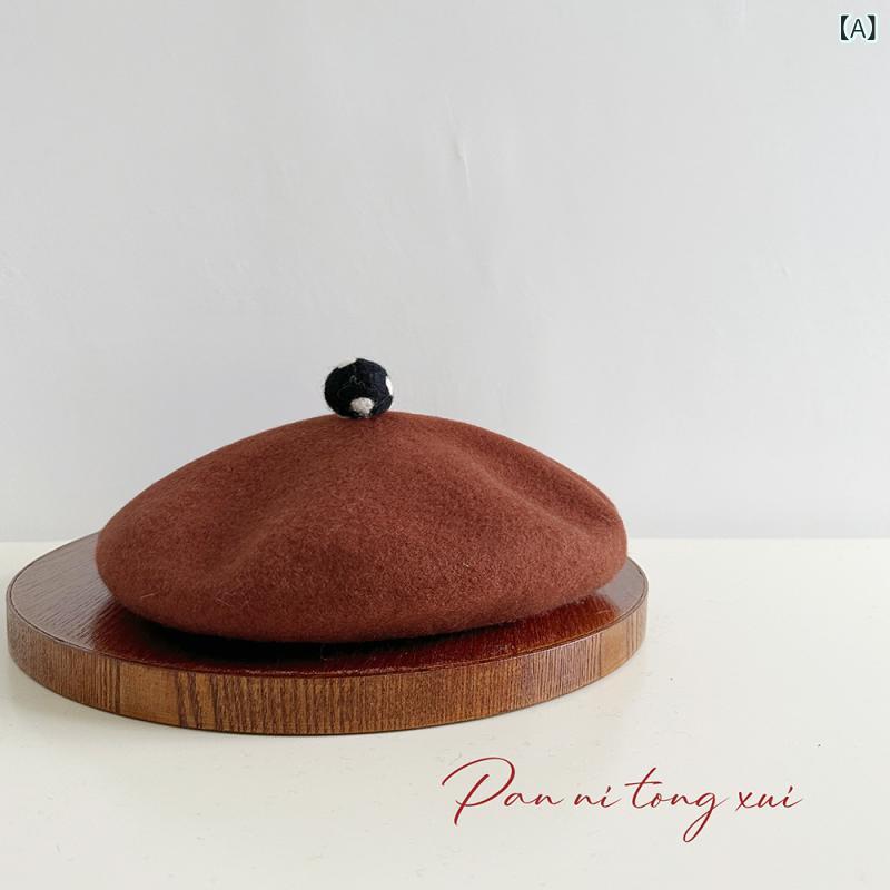 ベレー帽 レディース ウール フェルト ウール レトロ クラシック 個性的 ポンポン付き 秋冬 防寒 保温 ...