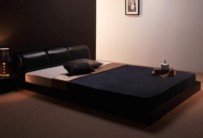 "フロアベッド シングル【MAD】【マルチラススーパースプリングマットレス付き】 ブラック モダンデザイ...