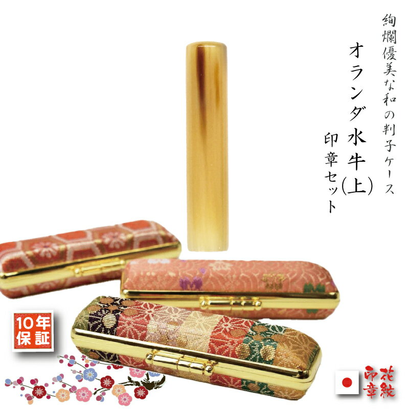 印鑑 実印 銀行印 オランダ水牛(上)印鑑セット かわいい印鑑 ぎおん 花ちりめん柄 サイズ/ケース朱肉付...