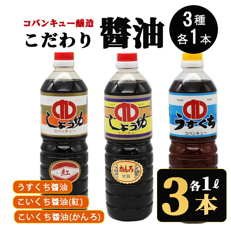 醤油 国産 九州 こだわり醤油 3種3本セット 3本×1000ml 【かんろ1本 紅1本 薄口1本】鹿児島 九州醤油 し...