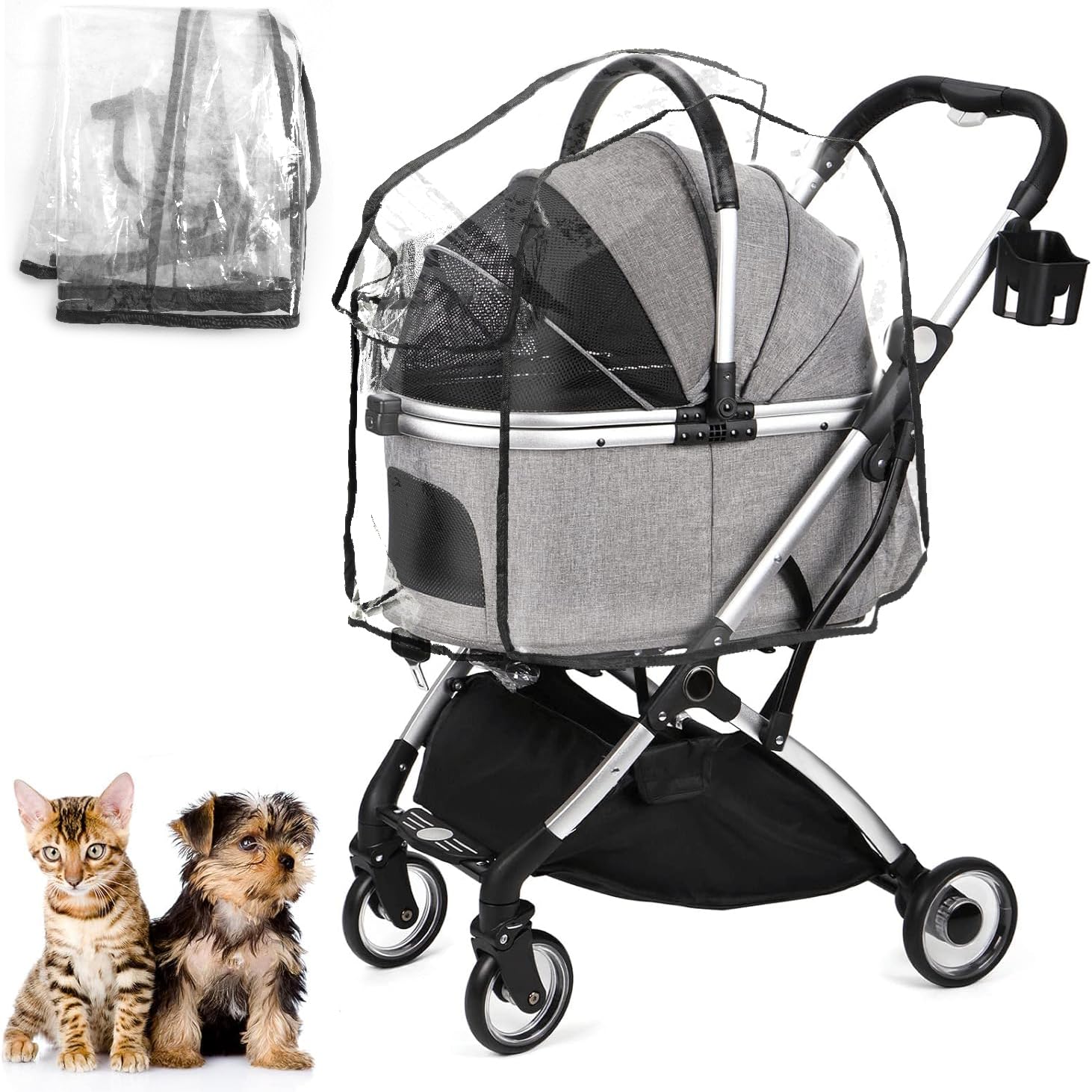 BQKOZFINペットカート用レインカバー 耐久性のあるペットカート用レインカバー 犬猫カートに適している ...