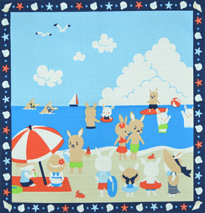シャンタンチーフ 小風呂敷 ≪四季彩布うさぎシリーズ≫ 海水浴 【茶道】【ハンカチ】【ランチクロス...