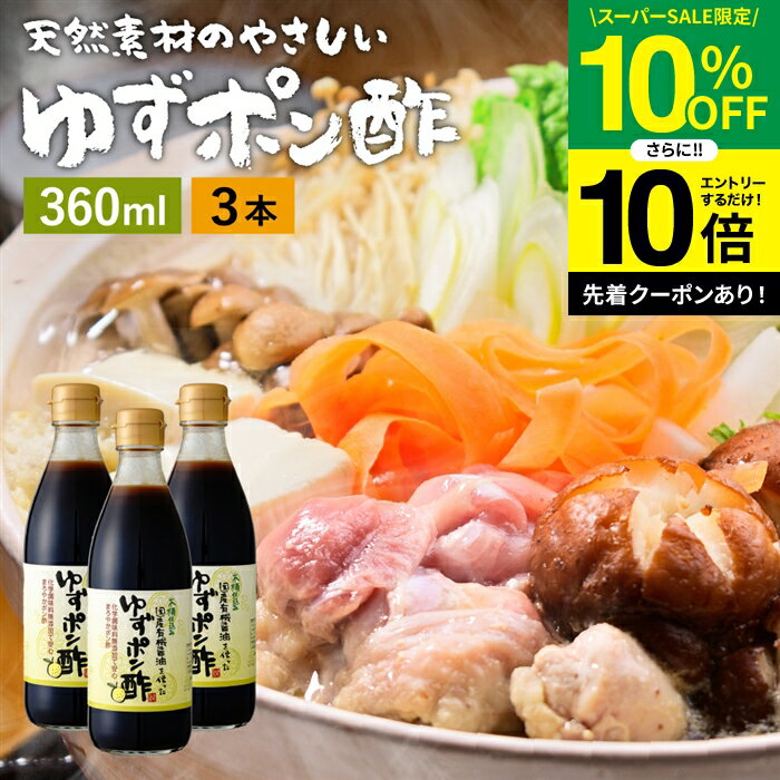 【SS限定★10%OFF】\エントリーでP10倍/国産有機醤油を使った ゆずポン酢 360ml×3本 セット 送料無料 ...
