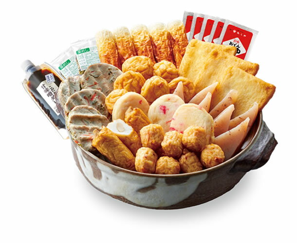 家族が揃ったら、アツアツおでんパーティーを。 練り物の旨みがつゆにまで染みて、笑顔ほころぶ美味しさです。 三河地方では定番の「甘味噌ダレ」と「菜飯の素」が付いています! 「甘味噌ダレ」はお好みでおでん...