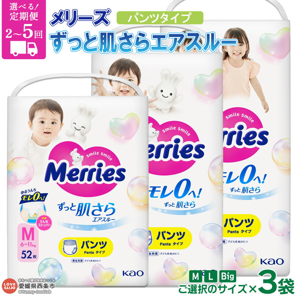 【ふるさと納税】定期便 おむつ メリーズ パンツタイプ ずっと肌さらエアスルー 3袋(サイズ:M L Big)...