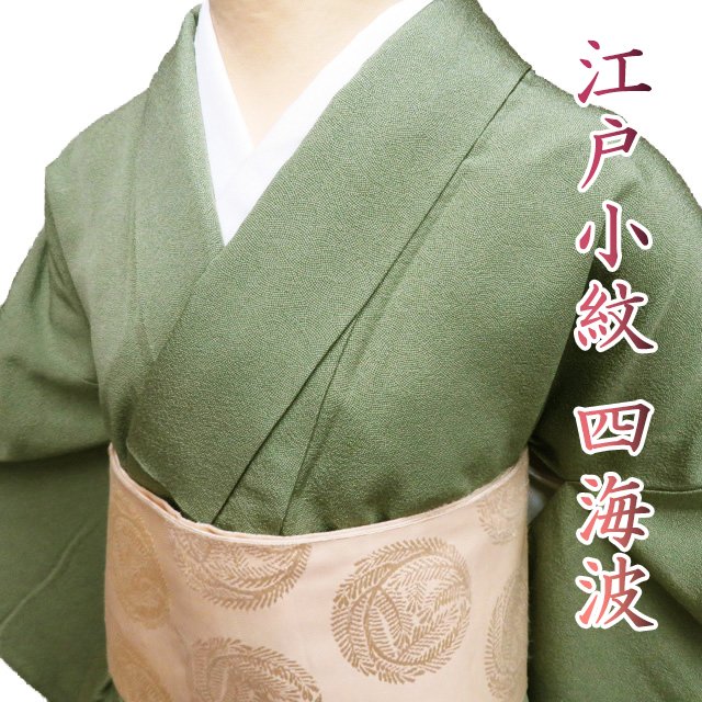 【 中古 】 小紋 江戸小紋 リサイクル着物 袷 セミフォーマル 紋付き 作家物 青海波 四海波 反端付き 草...