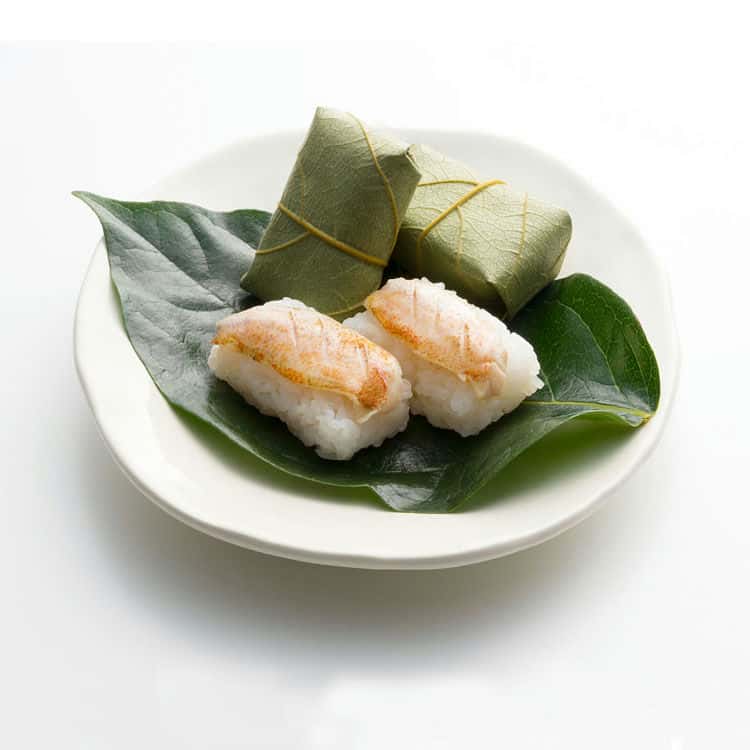 冷凍便でお届け 柿の葉で包んだお寿司です。