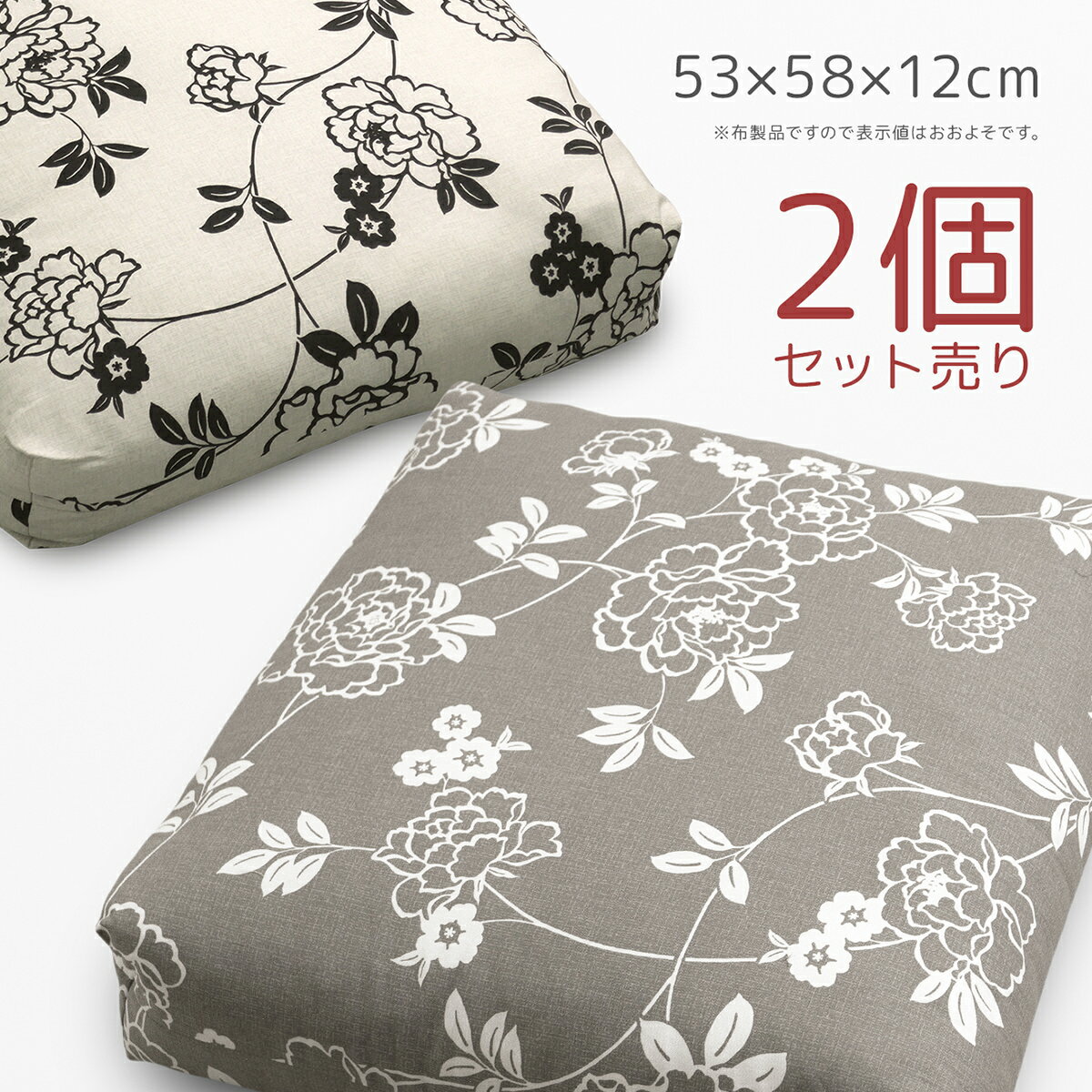 2個セット 超ボリューム クッション 約53×58×12cm ぼたん すみくろ ぎんねず ポリわたたっぷり 日本製 ...