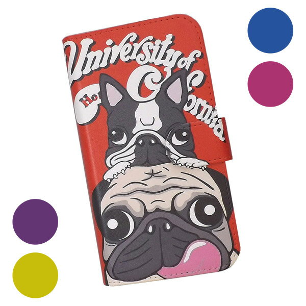 【メール便送料無料】 スマートフォンケース 手帳型 ほぼ全機種対応 手帳 印刷 けいすけ おんぶ パグ フレンチブルドッグ(005)