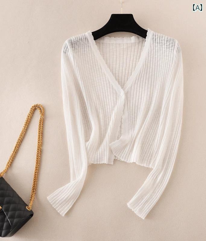 カーディガン 薄手 レディース ニット トップス 羽織もの 無地 シンプル 合わせやすい 長袖 半袖 夏 ショート 丈 Vネック スリムフィット 日焼け防止 風よけ 白 青 黄色 大きいサイズ