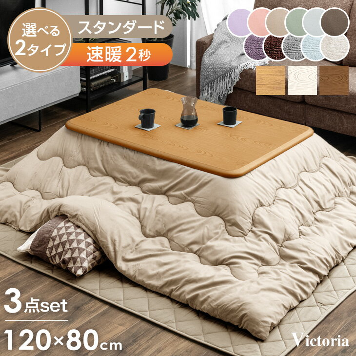 速暖2秒!600Wハロゲンヒーター こたつ3点セット 120×80 こたつ + 掛敷布団 便利な手元コントローラー付き 長方形 家具調 木製 コタツ コタツテーブル こたつセット シンプル おしゃれ