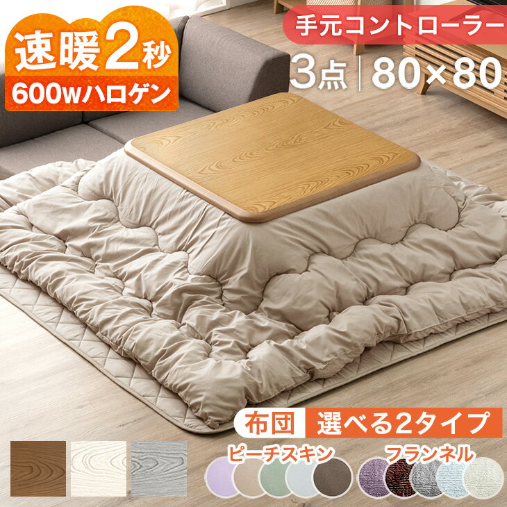 速暖2秒 600Wハロゲンヒーター こたつ テーブル 手元コントローラー 傷に強いUV塗装 正方形 80cm 家具調...