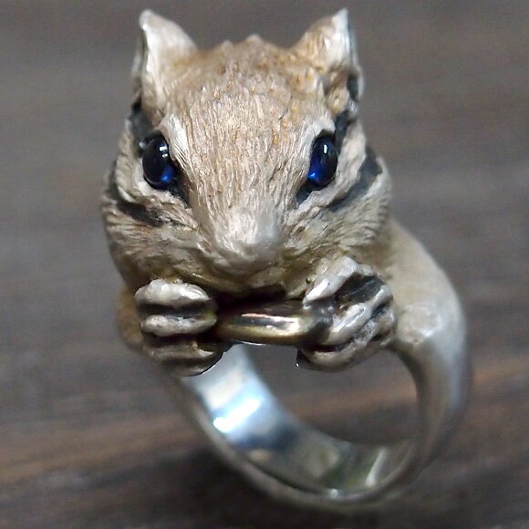商品番号 DE-084S 素材・加工 シルバー925、合成サファイア サイズ リングの幅:最大約27.5mmDECOvienya(デコヴィーニャ) 手作りアクセサリー 大きなシマリスリング シルバー [DE-084S] つぶらな瞳をした、かわ...